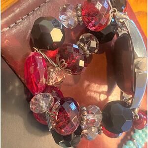 Women's40mm silver Tone Narmi Watch with Large Stretch Beaded Band