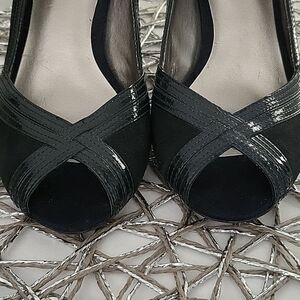 Womens ANN TAYLOR LOFT Dark Navy Blue Peep Toe Heel Size 7 M New Condition