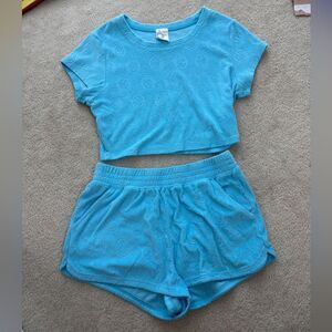Women’s Aerie Smiley Terry Cloth Set M. Barely worn, excellent condition. Elastic waistband for shorts. Crop top.