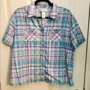 Women’s Alfred Dunner pastel plaid blouse. Pet and smoke free home. Bundle and save!