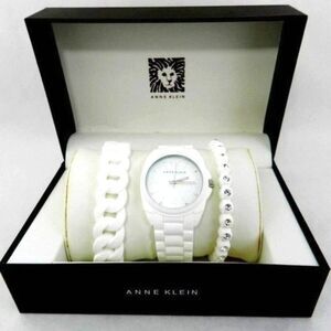 Womens Anne Klein White Japanese Quartz & Faux Diamond Watch & Bracelet Set