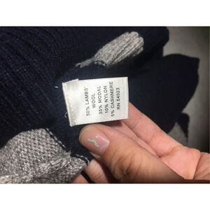 Measurements: Chest is 17 inches. Armpit to bottom hem is 20 inches. Material is 50% lambs wool, 35% modal, 10% nylon, 5% cashmere.