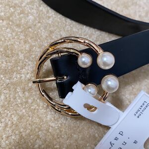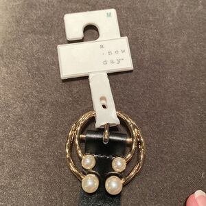 Women’s Black Belt with Goldish Buckle that has pearl like detail