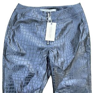 Women's Black Crocodile Skin Skinny Leather Pants - Stylish And Chic Design NWT