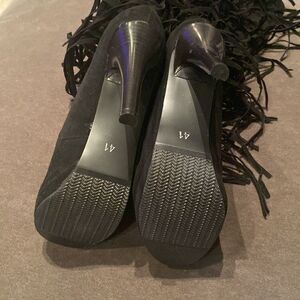 Women’s Black Fringed Tassel Faux Suede HighHeel KneeHigh Boot Size 41 (10.5 US)