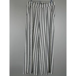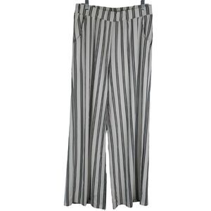 Women’s Black & White Striped Wide-Leg Pants Casual Fit Boho Chic Pants with Pockets XL