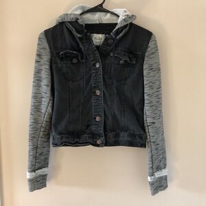 Mudd Black Jean Jacket With Sweater Sleeves XS