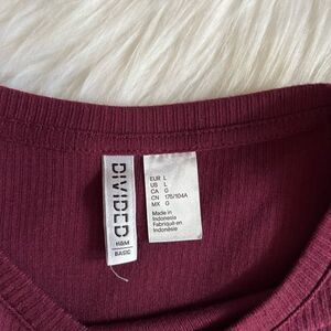 Women’s Burgundy Divided Long Sleeve Ribbed Top Size Large. Great basic piece