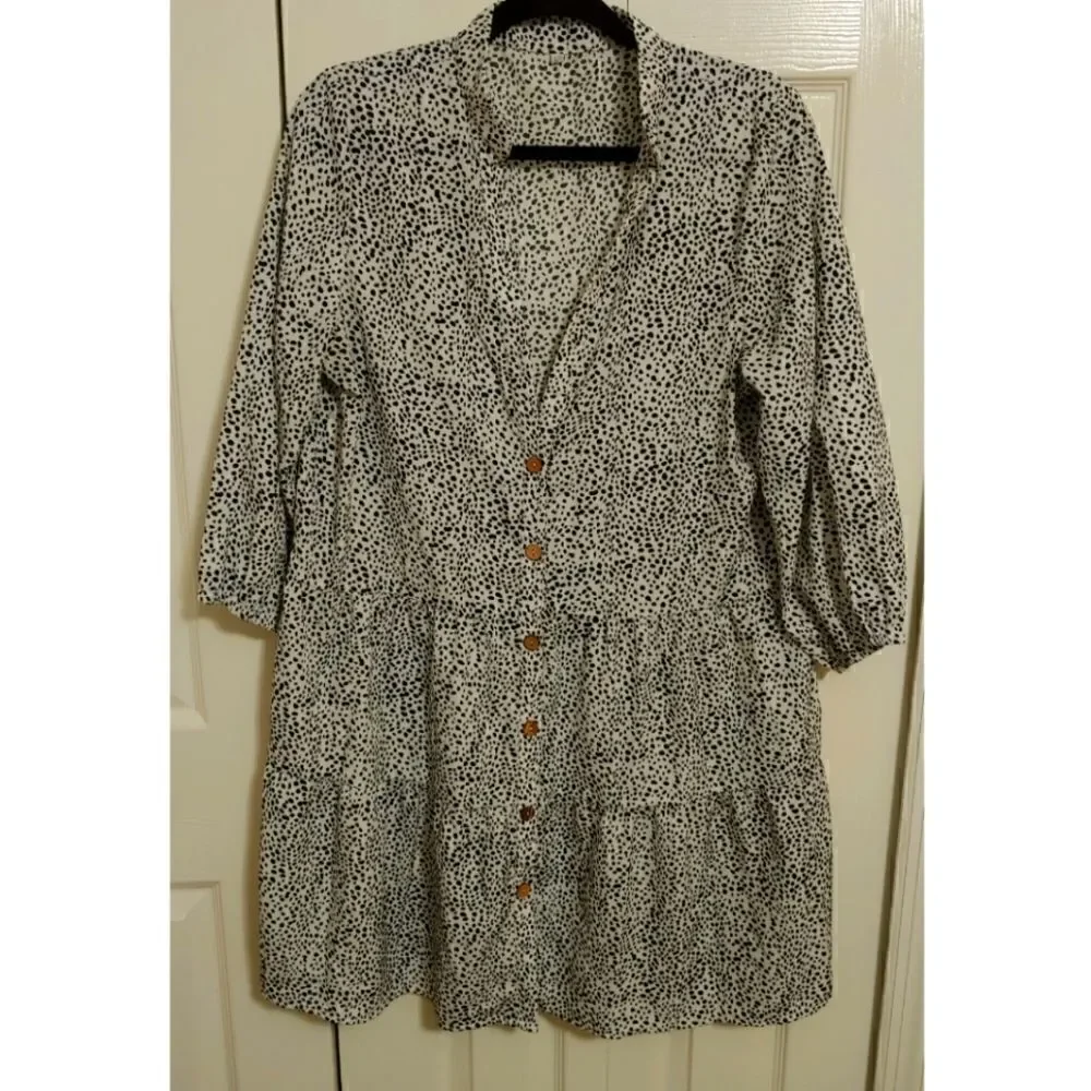 Women's Button Up Mini Dress/ GUC Good Used Condition/No Holes, Pulls or Stains/NO SIZE TAG/ Fits Size M/L/Adorable With Black & White Polka Dots/Machine Wash, Tumble or Line Dry/Please See Photos for Further Description/Smoke Free Pet Free Home