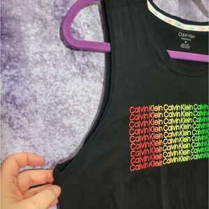 Woman's Black Medium Calvin Klein Performance Rainbow Mini Logo Tank Top. NWT