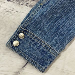 Items: Women’s Casual Kiss Blue Denim Button Down Waist Length Jean Jacket (L)