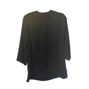 This elegant silk blouse offers a chic look with its split V-neck and puff sleeves. Perfect for casual outings or dressing up, it's designed to provide comfort and style simultaneously.