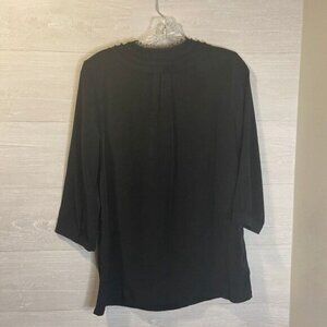 Women's Casual Split V-Neck Puff Sleeve Silk Blouse