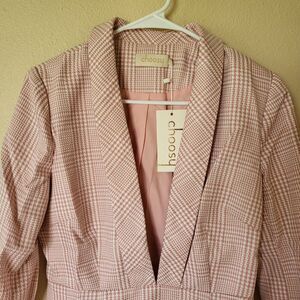 Women’s Choosy Long Sleeve Blazer Dress – Pink & White Checkered – NWT