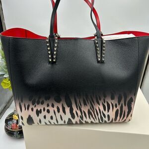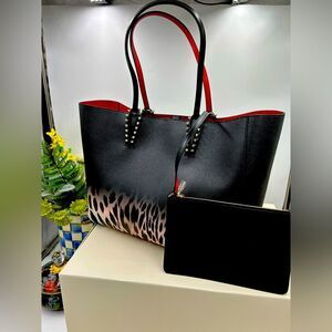 Women's Christian Louboutin large cabata cheetah print tote bag made in Italy