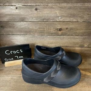 Womens Crocs Neria Pro II 2 Black Embellished Clog Mules Shoes Size 7 M GUC