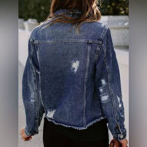 Women's Denim Jacket Long Sleeve Button Distressed Ripped Zimbaplatinum Jean Coat