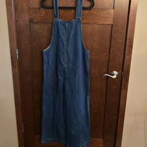 EUC. Womens Denim Overalls with Fun Large Button Closure. No Size or Brand Markings, Measures approximately: Length 46.5”; Inseam 24”; Waist (see photos).