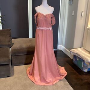 Women’s Dusty Pink Full Length Party Formal Dress Small Train Size 14 NWT
