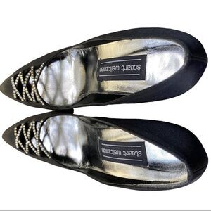 Women's Evening Stuart Weitzman Black Satin Rhinestone Pump Size 7