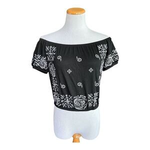 Womens Express Black Floral Embroidered Crop Top - Sz S