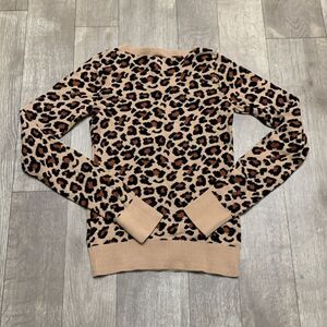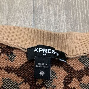 Womens Express Leopard Animal Print Crewneck Lightweight Pullover Sweater