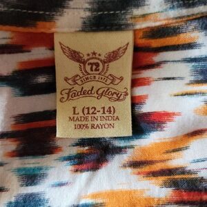 Womens Faded Glory Dress Button Down Shirt Pockets Multicolor Ikat Sz L