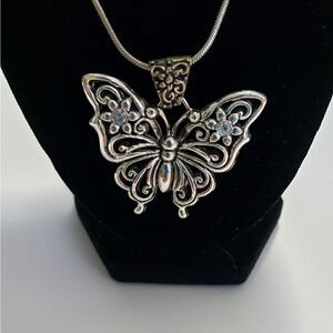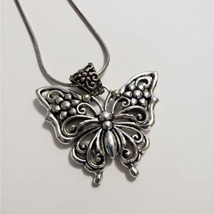 EUC silvertone filagree butterfly pendant on a 16" chain.
