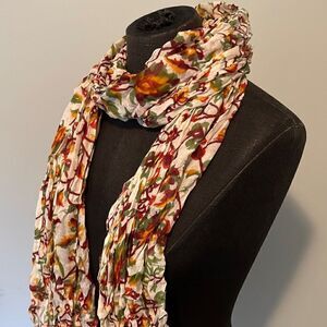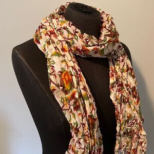 Women's Floral Tasseled Lightweight Scarf Multicolor