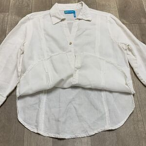 Womens Fresh Produce 100% Linen Button Down White Shirt