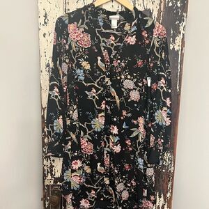 Women’s GP & J Baker x H&M Black Floral/Bird Print Shift button down Dress. 2.