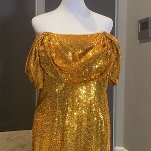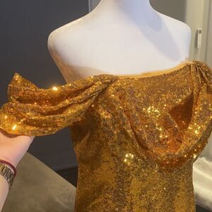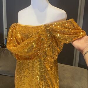 Women’s Gold Sequined Full Length Mermaid Style Dress Size 14