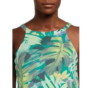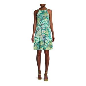 Features: Keyhole at back; flared hem; allover print