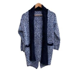 Women's Handmade Cardigan Duster Longline Open Front Eyelash Fringe Gray Sz S