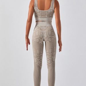 Women's Hot Snake Print Scoop Neck Crop Tank & Hi Waist Legging Set 2 Pc Yoga Set