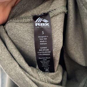The army green color adds a touch of vintage flair to your outfit, and the RBX logo on the waistband adds a trendy finishing touch. The full-length design provides coverage and support for your legs, while the elastic waistband ensures a secure fit that won't slip or slide during exercise.