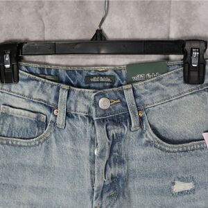 Women's High Rise Wide Leg Bermuda Jean Shorts 0