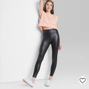 Women's High-Waisted Black Liquid Shine Leggings S New NWT