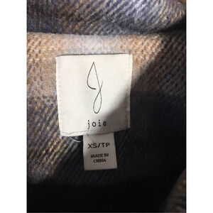 Womens Joie Coat Jacket Plaid Thick Wool Blend Tie Waist Pea Coat Winter Fashion