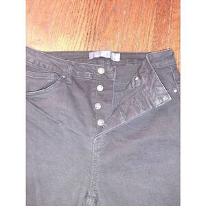 Good Used Condition Women's Juniors Jr Size 9 29" Waist Black Denim Indigo Rising High Waist Button Fly Split Leg Blue Jeans with Pockets and Belt Loops.