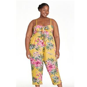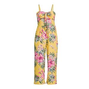 Women's Juniors Floral Strapless Tie Front Jumpsuit