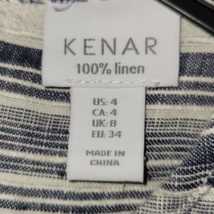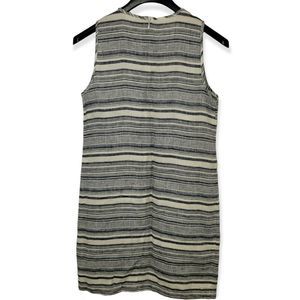 Women's Kenar 100% Linen Blue Cream Striped Shift Dress Size 4 unlined color blue and cream hidden back zipper sleeveless 100% linen pit to pit 19" length 37" excellent preowned condition (New1536)😊