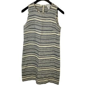 Women's Kenar 100% Linen Blue Cream Striped Shift Dress Size 4