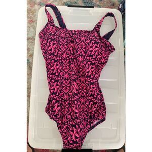 Women's Lands End Pink Navy Hobo Printed One Piece Bathing Swimsuit size 6 D. Pink Navy Hobo Printed One Piece Bathing Swimsuit Size 6 D