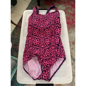 Women's Lands End Pink Navy Hobo Printed One Piece Bathing Swimsuit