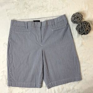 Women’s Lands End blue and white pin strip bermuda shorts. EUC Size 10. Inseam 9 1/2” Waist 16 1/2” Front rise 10”