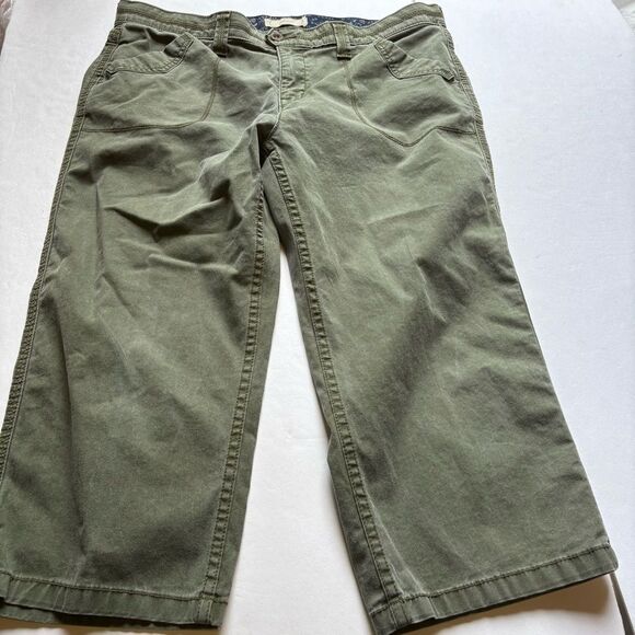 Levi's capris in olive green. Unique and stylish design. Button and zip close. 4 pockets. Belt loops.
