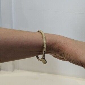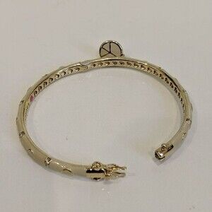 Women's Light Gold Bangle with Peace Sign Charm and Heart Details