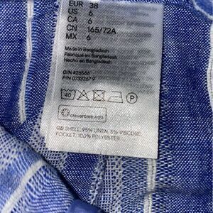 Womens Linen Blend Striped High Rise Tie Waist Casual Shorts Blue White Size 6
