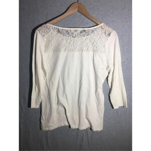 Womens Loft Blouse Lace Detailing Long Sleeve Cream Business Work Boho Career